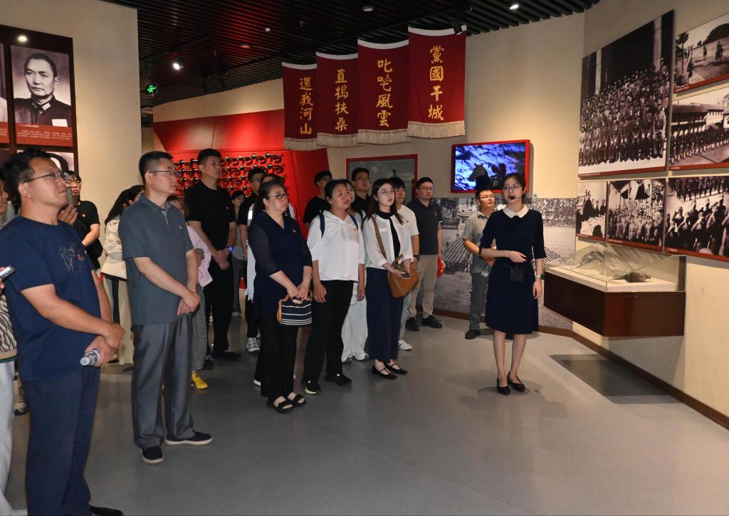 感悟担当,传承英雄气概。随后,师生党员参观了李宗仁史料馆和贺敬之文学馆。李宗仁史料馆通过大量照片、手稿与实物,生动展现了这位爱国将领的一生,特别是他作为第五战区司令长官指挥官兵奋勇杀敌、取得台儿庄大捷的英勇事迹。在贺敬之文学馆,师生们沉浸在贺敬之先生的文学世界中,感受其对中华运河文化的深情描绘和对民族英雄的热忱讴歌。其《回延安》《雷锋之歌》等诗篇,字里行间饱含着对党和人民的赤诚之心,彰显了文艺工作者与时代同频共振的使命担当。员工党员丁朔感慨道:“两座展馆,承载着厚重的历史。无论是将军手中的钢枪,还是诗人笔下的文字,都是撑起民族脊梁的铮铮铁骨。新时代的接力棒已传递到我们手中,正等待着我们用同样的赤诚去续写新的篇章。”
