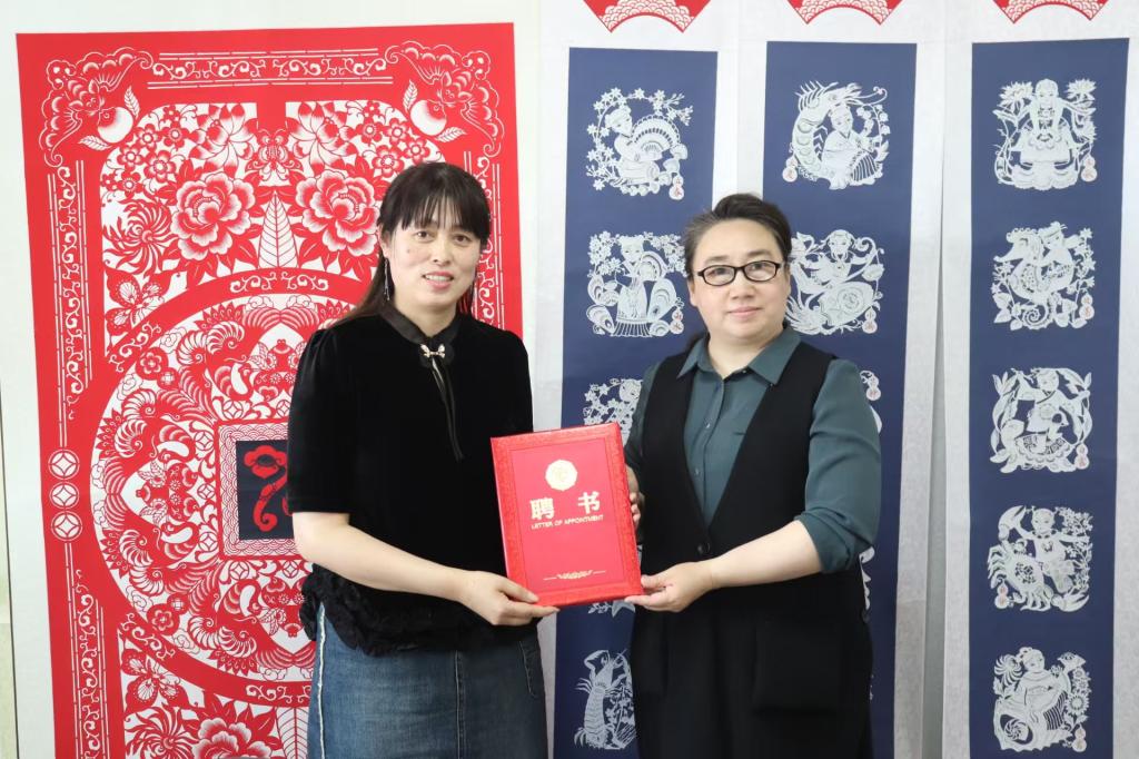 院徽剪纸赠情谊,薪火相传聘名师。精彩的剪纸体验活动后,举行了简朴而有意义的捐赠与聘任仪式。为支持公司文化建设,薛娜老师将精心创作的太阳成集团tyc234cc院徽主题剪纸作品赠予公司。该作品尺寸达 120*120,巧妙地将传统剪纸艺术与公司特色融合,极具艺术价值与纪念意义。甘露露代表公司接受捐赠,并向薛娜老师致以诚挚谢意。随后,甘露露为薛娜老师颁发聘书,聘请其为公司“非遗文化传承导师”。甘露露在致辞中表示,此次聘任标志着公司与非遗传承人深度合作的良好开端,下一步,公司将定期邀请薛娜老师走进校园,开展系列非遗剪纸文化体验活动,引导青年学子在动手实践中体味非遗之美,感悟匠心之韵,真正做到“以美化人,寓教于乐”,让传统文化在青年群体中生根发芽。