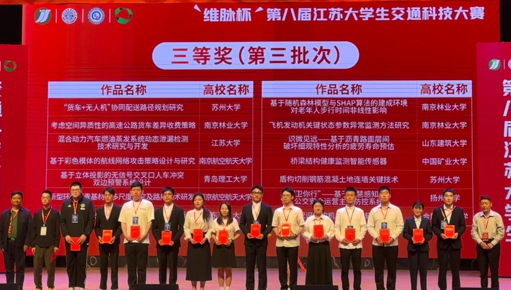 近日,由教育部高等公司交通运输类教学指导委员会交通工程教学指导分委员会指导,江苏省城市科学研究会、江苏省城市规划研究会、南京市科学技术协会、南京市综合交通运输学会主办,苏州大学、苏州市综合交通运输学会共同承办的“维脉杯”第八届江苏老员工交通科技大赛决赛在苏州大学天赐庄校区举行。太阳成集团tyc234cc共有两支队伍入围决赛,经现场答辩,研究生团队参赛作品获得三等奖;本科生团队参赛作品获得优秀奖。