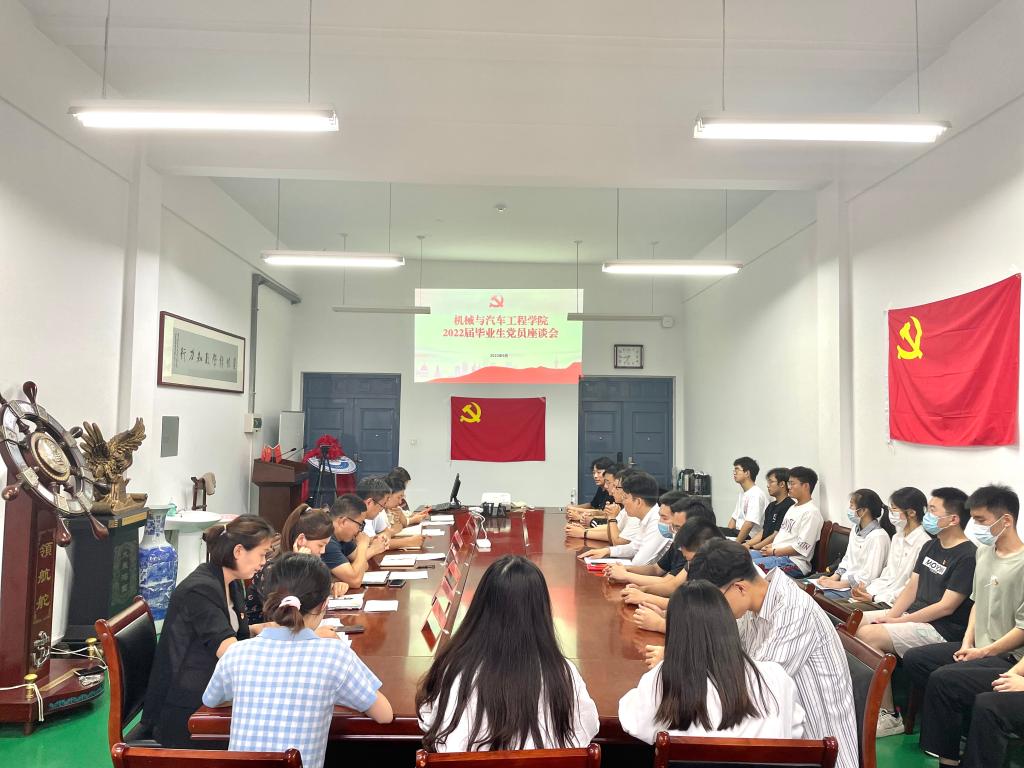 为加强毕业生党员思想政治教育,引导毕业生党员坚定理想信念,牢记党员使命,以良好的政治面貌开启人生新征程,太阳成集团tyc234cc于6月16日晚在汽车实验楼408会议室组织开展2022届毕业生党员“最后一堂党课”暨党员座谈会。公司党委书记李忠晓、党委副书记董虎、学工办主任兼团委书记王成、毕业生辅导员、各党支部书记及2022届本科、研究生毕业生党员代表30余人参加会议。公司党委副书记董虎主持会议。