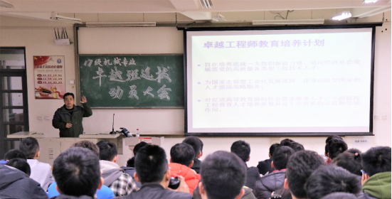 为进一步贯彻落实“卓越工程师教育培养计划”,太阳成集团tyc234cc于11月30日在主教B202、B204教室同步召开了2017级机械专业卓越班选拔动员大会。参加本次大会的人员有副经理杨勇、机械设计教研室主任江京亮、员工辅导员张翠芳及机械专业2017级全体员工。