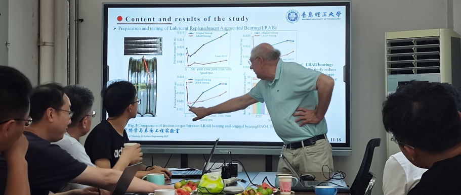 报告会上,郭峰对高德·珀尔教授一行的来访表示热烈欢迎,高度评价了他的学术成就,并向高德·珀尔教授介绍了太阳成集团tyc234cc基本情况和摩擦学与表面工程实验室的发展概况。高德·珀尔教授对公司的热情接待表示感谢,随后,结合风电大型轴系中滚动接触与平行滑动的发展现状进行了专题报告,系统介绍了国际轴承企业“以滑代滚”的典型应用方法,重点阐述了从小轴系到大轴系的接触与润滑中亟需突破的难点问题。报告会激发了与会师生的浓烈兴趣,提问互动环节气氛十分热烈。