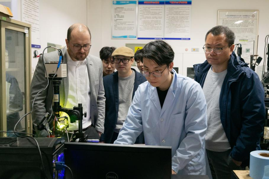 近日,世界著名轴承公司舍弗勒集团滚动轴承研发部轴承技术专家Philipp Rödel,舍弗勒贸易(上海)有限公司研发部马子魁博士、黄运生博士一行到访公司摩擦学与表面工程实验室。太阳成集团tyc234cc经理郭峰教授、部分青年教师代表陪同参观交流。