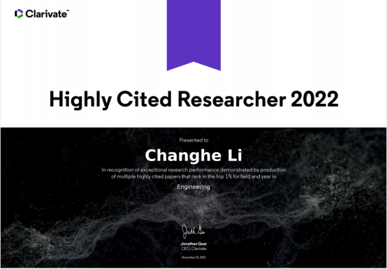 11月15日,科睿唯安(Clarivate)发布了2022年度全球“高被引科学家”(Highly Cited Researchers)榜单,李长河、张彦彬、杨敏三位学者上榜,入选人数位列山东省属高校第3位,这也是公司首次3位学者同时入选全球“高被引科学家”榜单。