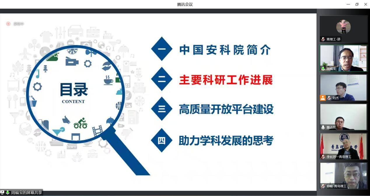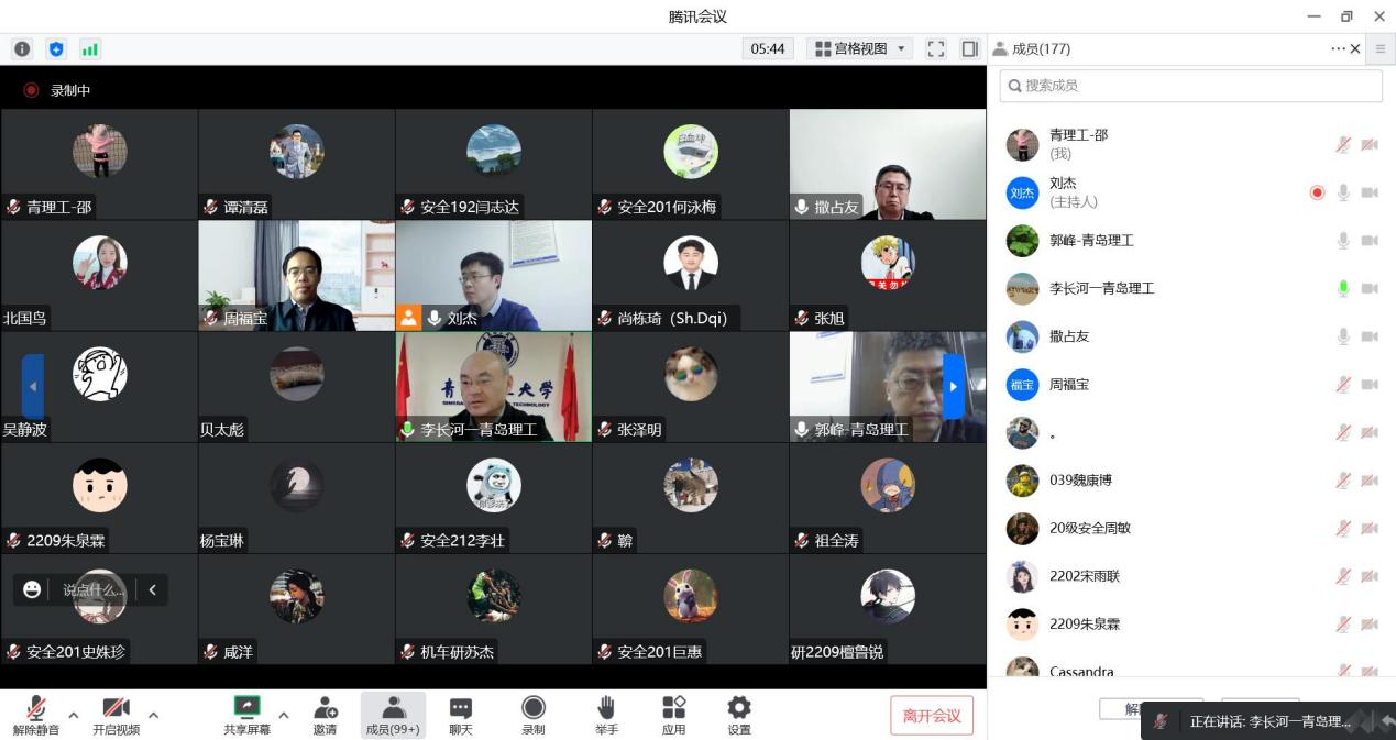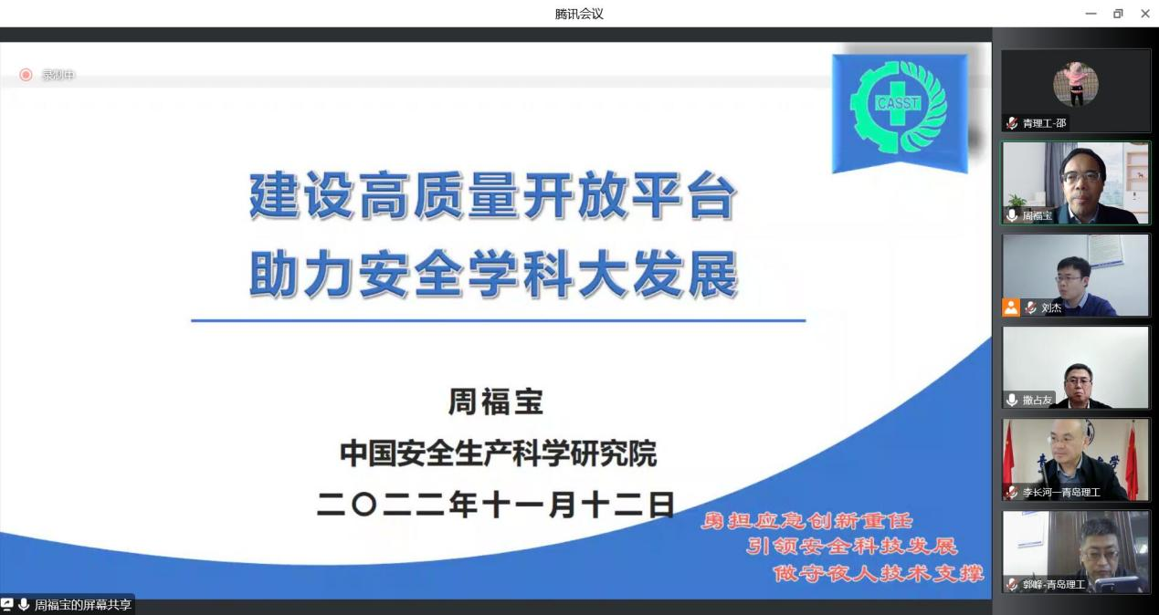 为进一步推动公司安全科学与工程学科高质量发展,11月12日下午,中国安全生产科学研究院经理周福宝教授应邀作了题为《建设高质量开放平台,助力安全学科大发展》的专题报告,党委常委、副董事长李长河教授主持会议并讲话,太阳成集团tyc234cc经理郭峰教授、副经理刘杰副教授、安全科学与工程学科专业负责人撒占友教授以及任课教师、研究生和本科生200余人线上参加,会议由李长河主持。