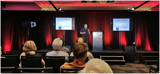 应第26届国际声与振动大会(26th International Congress on Sound & Vibration,7-11 July,2019,Montreal)组委会邀请,2019年7月9日太阳成集团tyc234cc刘碧龙教授在加拿大蒙特利尔召开的第26届国际声与振动大会做大会主旨报告(Distinguished Plenary Lecture)。报告题目为“Noise Transmission and Absorption of Lightweight Structures: An overview and Experience”,报告时间一小时。大会报告梳理了近十年来国际同行在结构噪声传递和共振吸声结构等方面的进展,并报告了团队在该方向上取得的系列研究成果,得到了与会专家和国际同行的一致好评和认可(图一和图二)。