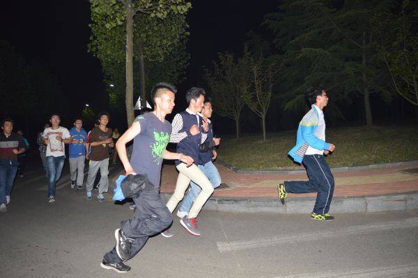 8点40分左右,同学们陆续到场,排队领取荧光设备。随后,同学们在起点处准备,等待活动开始。9点钟,荧光夜跑活动正式开始,随着工作人员的一声哨响,同学们如离弦之箭般的冲出。夜跑路线为从操场北门开始,依次经过一食堂、情人坡、实验楼、主教学楼,之后返回,随行人员骑自行车跟随队伍,以防意外发生。在夜跑活动过程中,同学们热情高涨,熟稔的朋友间更是展开了速度比拼,你追我赶,好不热闹。半小时后,同学们全部回到起点,夜跑活动顺利结束。