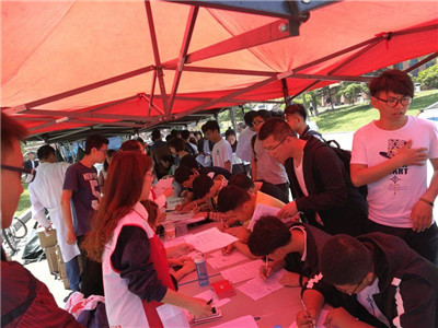 2017年5月24、25日,在太阳成集团tyc234cc嘉陵江路校区红十字志愿服务团的帮助下,公司在嘉陵江路校区教学楼门口组织进行了无偿献血活动。虽然烈日炎炎,但同学们踊跃参与,最终总共有575位充满爱心和责任感的同学自愿进行了献血,献血总计192600毫升,刷新了公司的献血记录,让温暖的爱心再次洋溢在青理工的校园。