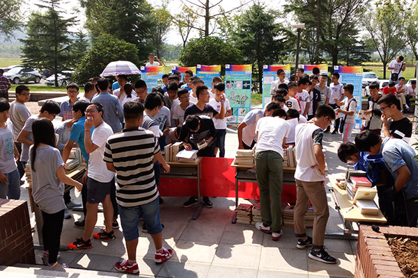2015年9月6日上午,为迎接新生的到来,机械公司员工会组织举办了“以书会友,薪火相传”书香迎新活动。 上午9时,各班班助带领同学们到教学楼A116门口,排成队伍等待赠书。这次所赠书籍都是大二同学自愿捐出,目的是为了与有相同兴趣的新同学们结交朋友,沟通交流。新生们都很兴奋,都认为他们收到的这大学的第一份礼物很有意义。 活动持续近两个小时,同学们秩序井然的参加并完成了赠书活动。这次“以书会友,薪火相传”书香迎新活动最终圆满结束。活动不仅增强了大二同学和新生之间的交流,更是提醒新同学们大学不是安逸享乐的地方,同学们要始终为了自己的理想不懈的奋斗。 (机械公司 王曼婷)