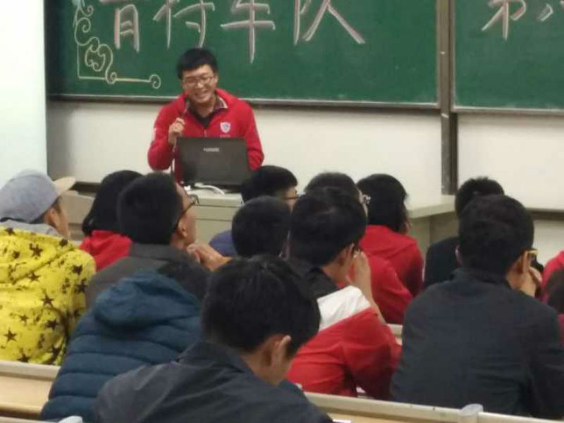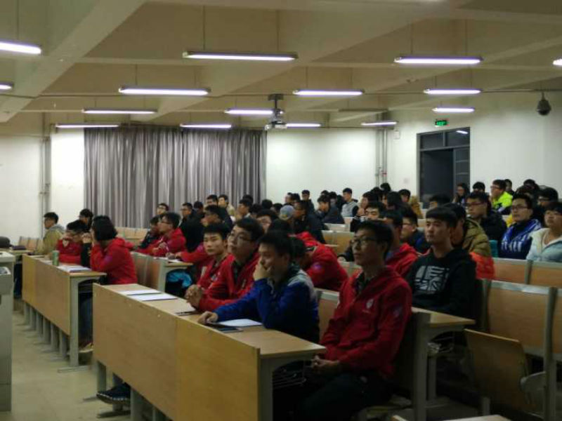 晚7时,宣讲会准时开始。首先,主持人大致介绍了一下车队,并播放了往年的车队比赛视频,激发了现场同学们对车队强烈的好奇心与向往。青特车队共分5个组,分别为底盘组、车身组、电气组、营销组和成本组,每个组都具有自己的特色,都会对汽车的某一功能进行深刻的研究。接下来各组组长对车队进行了详细的介绍,以便同学们加入自己适合的组织。随后车队的老队员发表了对车队的看法,以及对新队员的要求,还指出了一时兴起加入车队的误区,引导同学们以正确的态度加入车队,并做好长期奋战的准备。青特车队的队员们也耐心地听取同学对车队疑问的地方,为同学们解答疑惑。最后宣讲会在热烈的掌声中圆满结束。
