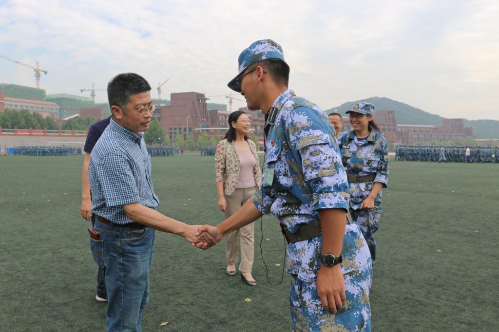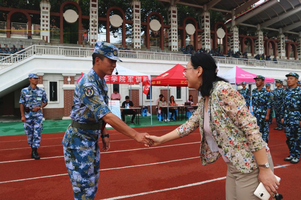 为感谢军训期间教官对新生的无私教导,对军训的辛苦付出,9月11日上午,机械与汽车工程公司党总支书记岳丽宏、经理郭峰、党总支副书记林海涛、副经理王优强、潘福全、团总支书记隋学智一行人到达训练场对教官们进行亲切慰问。
