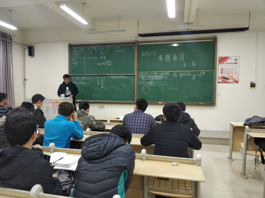 12月10日晚,机械178班于主教B507教室开展“专题自习分享会”活动第二期。本活动专题课程为材料力学,由盛勇同学主讲,机械178班全体同学共同参与。