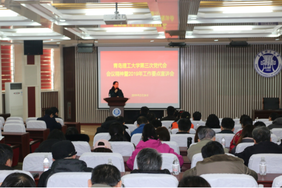 谭秀森传达了省委书记刘家义在山东省“担当作为、狠抓落实”工作动员大会上的讲话精神,全面宣讲了公司第三次党代会所确立的“一个总目标”、“三步走部署”、“五大发展战略”和“十大工程”,深入解读了2019年公司党委、行政工作要点。谭秀森指出, 2019年是省委确定的“担当作为、狠抓落实”之年,也是公司全面落实第三次党代会精神、建设特色鲜明的高水平应用研究型大学的开局之年,是公司实现高质量、内涵式发展的攻坚之年。谭秀森强调,围绕建设特色鲜明的高水平应用研究型大学的目标,我们要以习近平新时代中国特色社会主义思想为指导,认真贯彻落实全省“担当作为、狠抓落实”工作动员大会精神,以第三次党代会确立的蓝图为遵循,一要转变作风,扑下身子抓落实;二要鼓足干劲,振奋精神抓落实;三要加强学习,提高本领抓落实;四要创新方法,完善机制抓落实;五要严明纪律,步调一致抓落实。