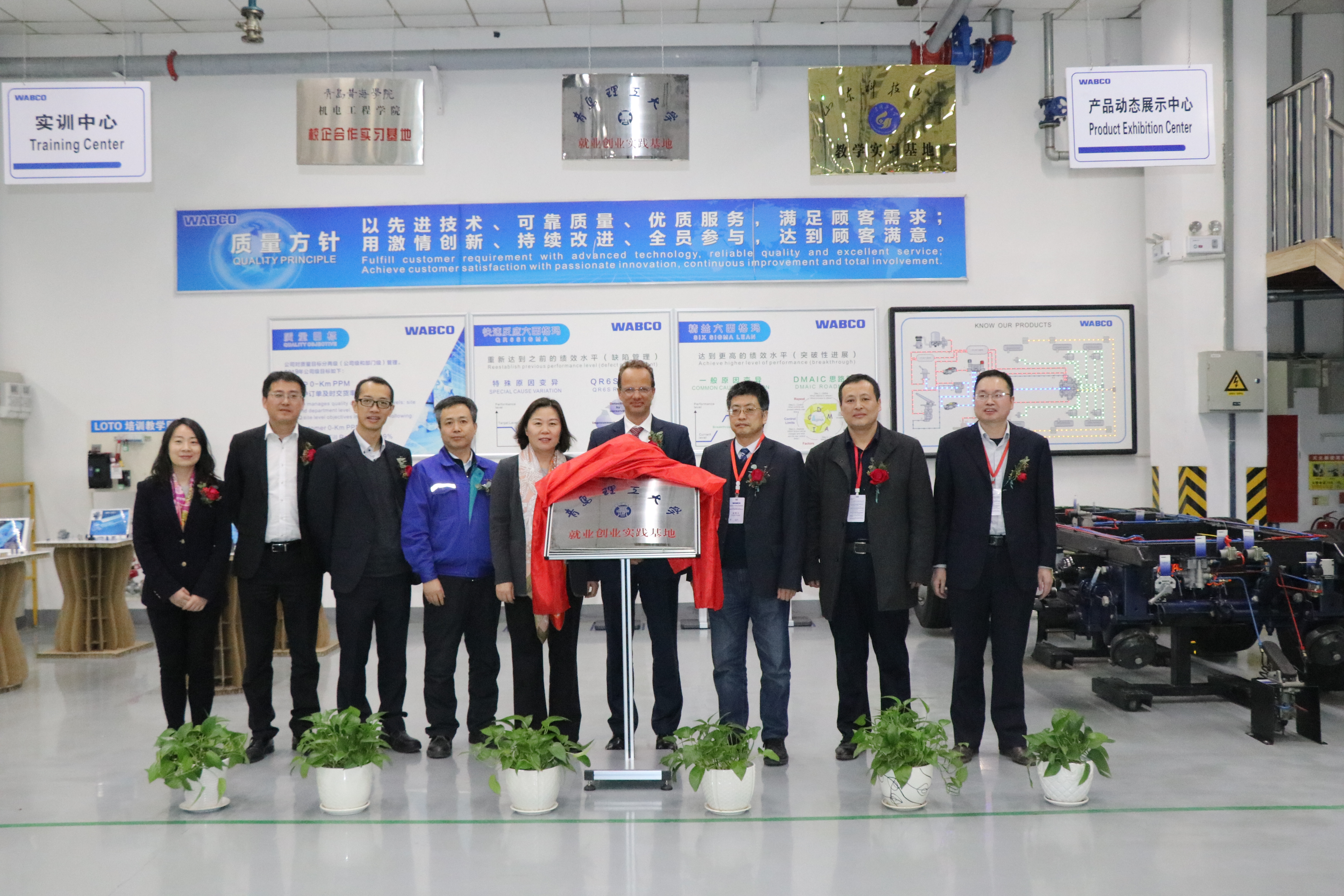 2019年2月28日,公司与威伯科汽车控制系统有限公司在青岛工厂举行了校企合作揭牌仪式。威伯科集团全球副总裁、亚太区总裁于素杰女士、威伯科集团全球副总裁Philipp先生、威伯科汽车控制系统有限公司亚太区领导团队及青岛工厂总经理王继才和太阳成集团tyc234cc经理、博士生导师郭峰教授,党总支副书记林海涛,就业辅导员张建军等出席此次揭牌仪式。