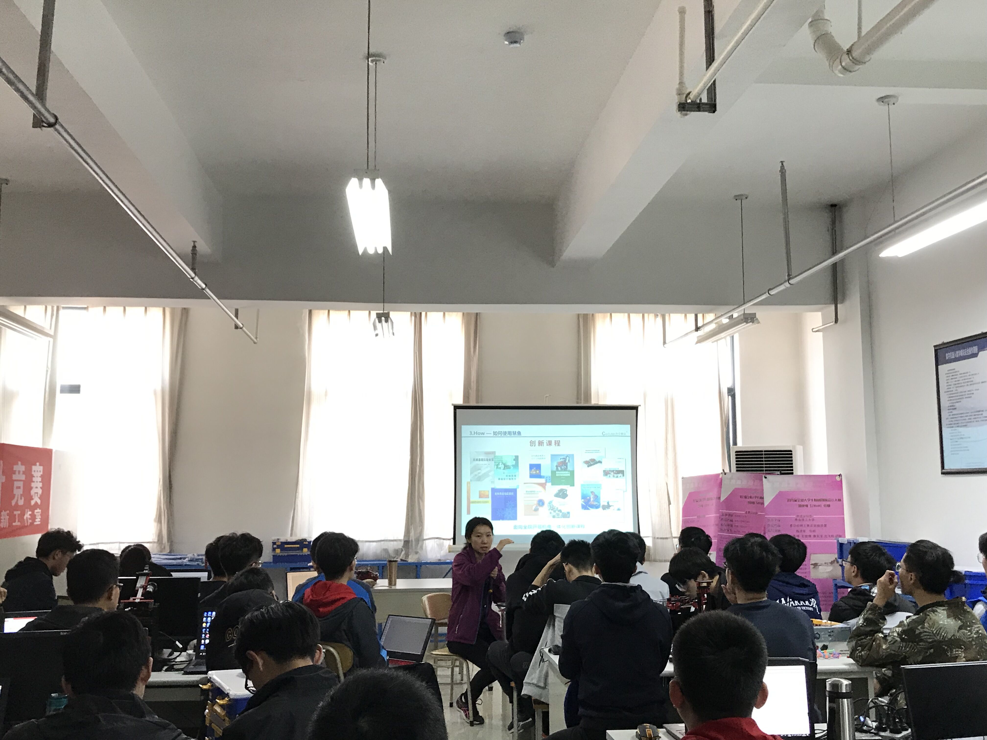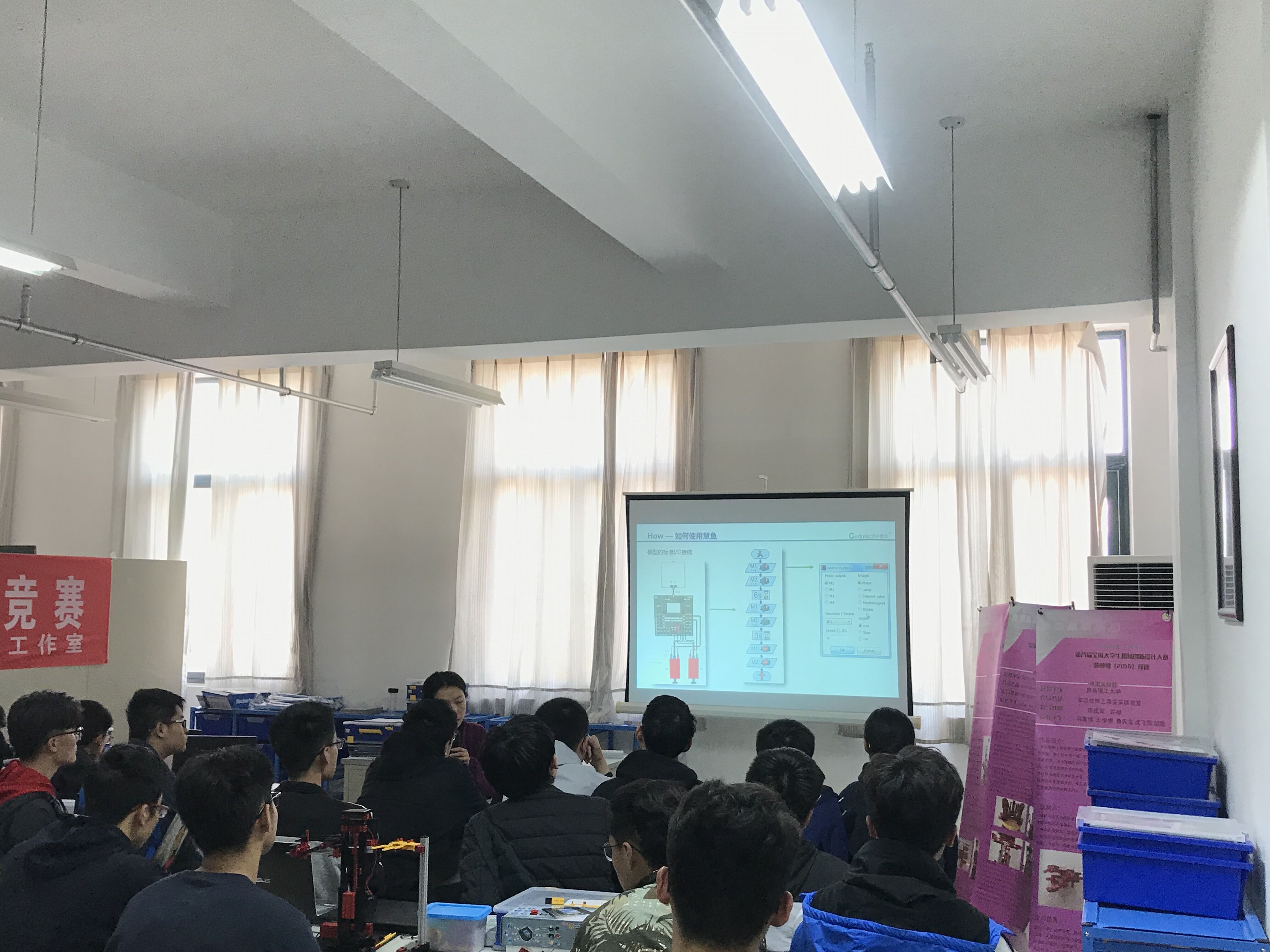为进一步浓厚老员工科技创新氛围,加强慧鱼实验室建设,积极备战第十六届机电产品创新大赛(慧鱼组)比赛,太阳成集团tyc234cc于4月14日邀请北京中教仪科技有限公司总工程师杨玲为参赛师生进行了慧鱼模型搭建培训会。