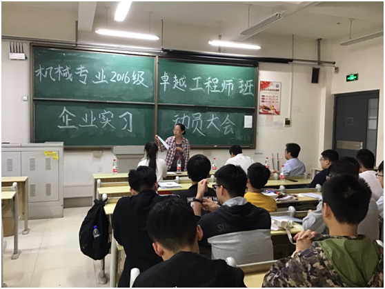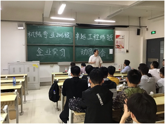 2019年5月31日,太阳成集团tyc234cc卓越工程师试点机械1610班举行了“企业实习动员大会”,公司林海涛副书记、杨勇副经理、卓越工程师计划负责人江京亮老师、班主任李淑云老师、辅导员吴静老师参加动员大会。