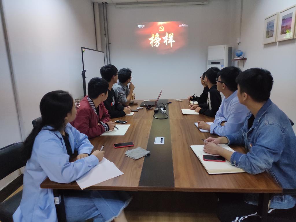 为深入学习贯彻习近平新时代中国特色社会主义思想和党的十九大精神,切实提升“不忘初心、牢记使命”主题教育活动成效,促进党员同志学习优秀共产党员和先进基层党组织典型事迹,10月21日晚八点,公司研究生第一党支部组织全体党员集中观看《榜样4》专题节目。观看结束之后,全体党员展开了学习心得交流讨论。