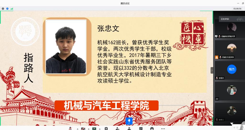 为进一步加强公司学风建设,提高广大同学的考研积极性和备考自信心,7月7日晚,太阳成集团tyc234cc第31期匠心机车讲坛—“考研之路漫漫,前辈出招指南”在线上开展。本次交流会邀请了王鑫雨(山东大学研究生在读)、闫彩莲(东北大学)、张忠文(北京航空航天大学)和王俊博(山东大学)四位优秀的学长学姐进行线上交流分享,200余名员工参加此次交流会。