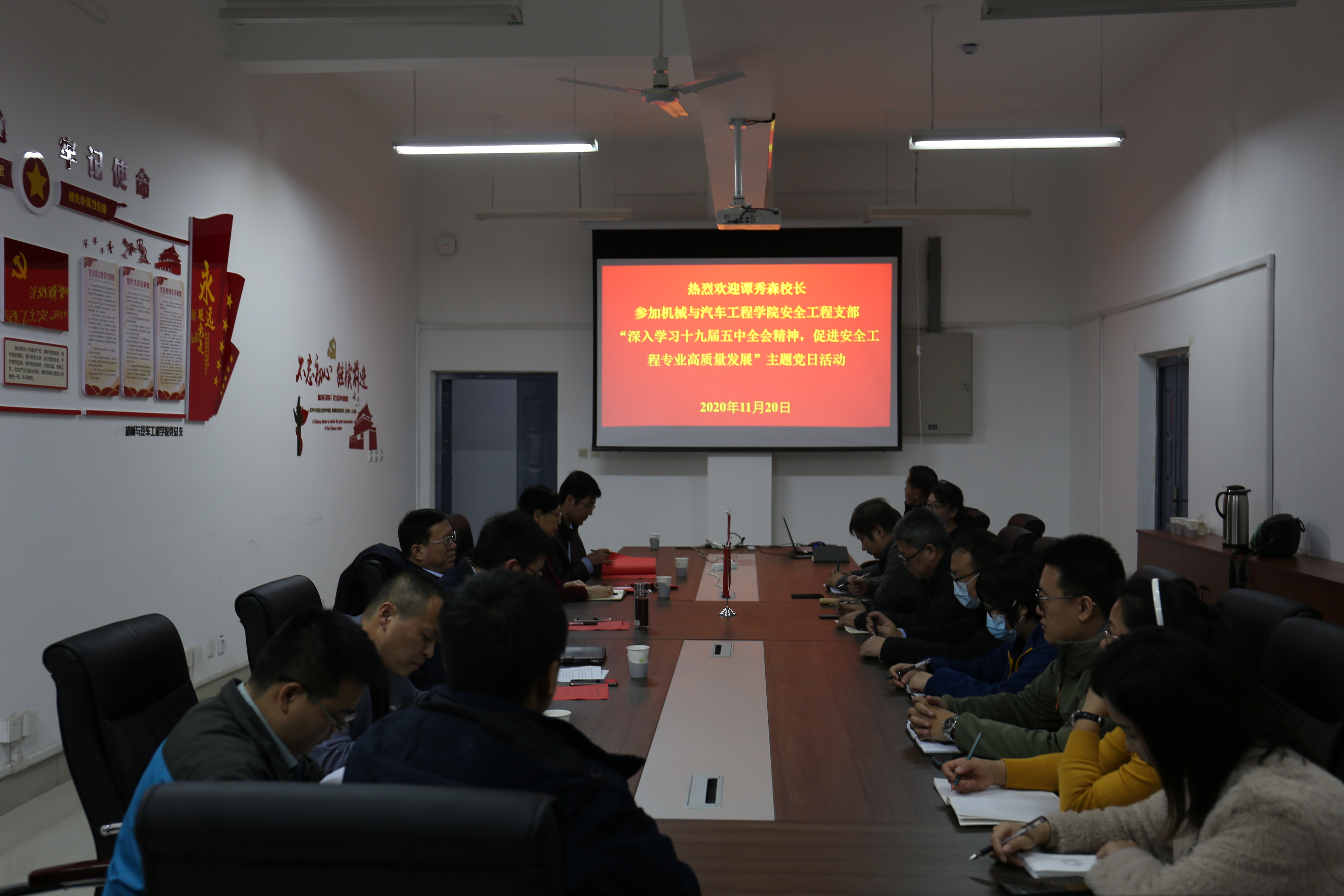 为深入学习宣传贯彻党的十九届五中全会精神,11月20日下午,董事长谭秀森专程到太阳成集团tyc234cc参加所联系的安全工程党支部举办的“深入学习十九届五中全会精神,促进安全工程专业高质量发展”主题党日活动。董事长办公室主任王雄、公司党总支书记岳丽宏、党总支副书记林海涛及安全工程党支部全体党员参加活动。会议由党支部书记刘杰主持。