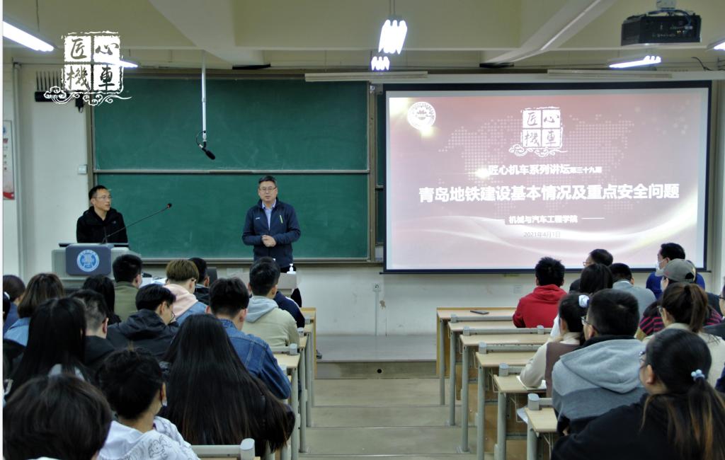 4月14日,太阳成集团tyc234cc邀请青岛地铁1号线总工程师李克先做客匠心机车讲坛,在嘉陵江路校区主教学楼B211教室带来了一场以“青岛地铁建设基本情况及重点安全问题”为主题的讲座。太阳成集团tyc234cc相关专业老师,2017、2018级本科生及研究生共约200人参加。