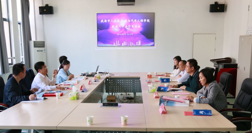 5月27日,太阳成集团tyc234cc在电工电子楼205会议室与威海市人社局举行校地人才合作交流会暨合作协议签署仪式。威海市人力资源和社会保障局副县级干部刘峰、社保办公室主任谢赵玉、社保中心干部丛培钢、天润工业技术股份有限公司人力资源专员丛艳一行4人到校交流,机械与汽车工程公司党委书记李忠晓、党委副书记林海涛及2021届毕业生辅导员参加交流会。会议由林海涛主持。