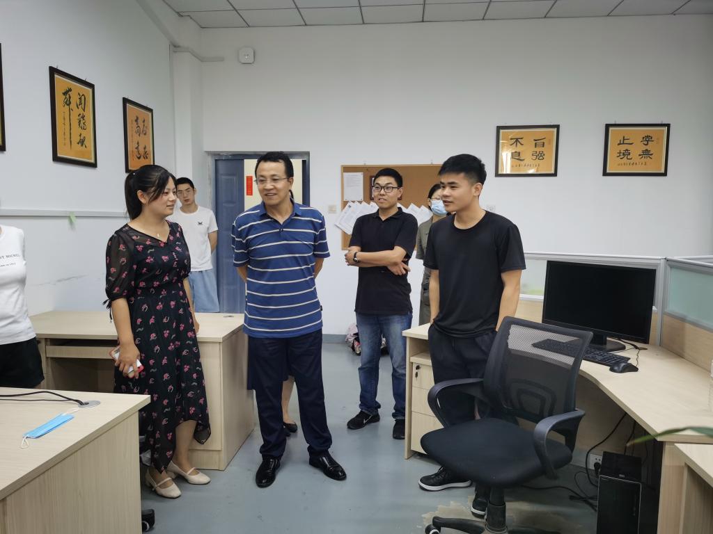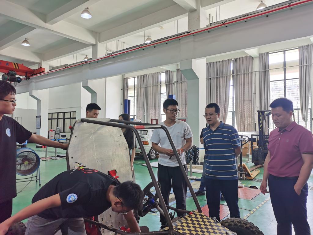 在车队训练现场,董虎看望了方程式和巴哈车队留校备赛员工。他希望同学们精心准备、努力学习,不断提高理论水平和实践动手能力,出外参赛期间要服从指挥,注意自身安全,严格落实疫情防控措施,在确保安全的前提下,取得更多优异成绩。董虎还走访了员工实验室,详细了解员工暑假学习计划和考研打算,叮嘱员工合理规划暑假时间,认真开展学习、科研和竞赛活动,全面提升自身综合素养。