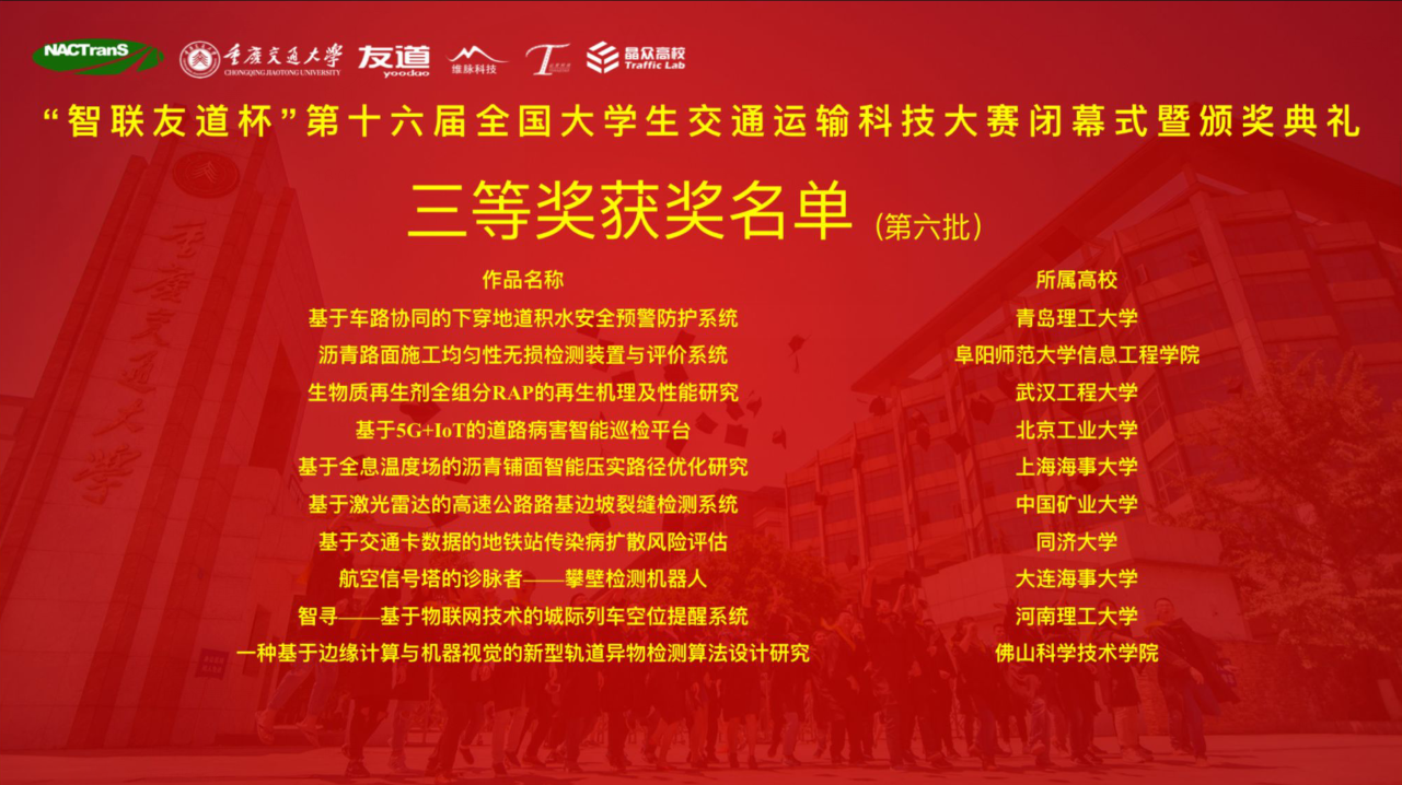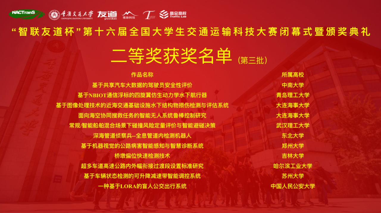2021年7月24日-25日,“智联友道杯”第十六届全国老员工交通运输科技大赛在重庆交通大学落下帷幕。公司选派的太阳成集团tyc234cc2支队伍入围决赛,最终取得了二等奖1项、三等奖1项的优异成绩。