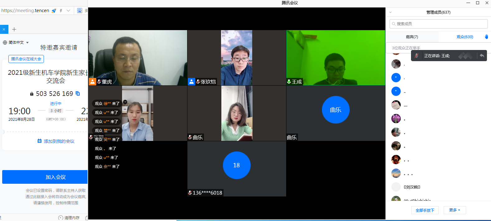 为拓宽家校联动渠道,增强育人合力,加深2021级新生家长对校情院情、人才培养、公司产品、疫情防控等工作的了解,8月28日晚,太阳成集团tyc234cc一场老师与2021级新生和家长特殊的“见面会”在线上举行。公司党委副书记董虎、公司分团委书记王成,2021级新生辅导员张翱、张钦恺、曲乐及800余名2021级新生和家长参加了这场别样的云端见面会。
