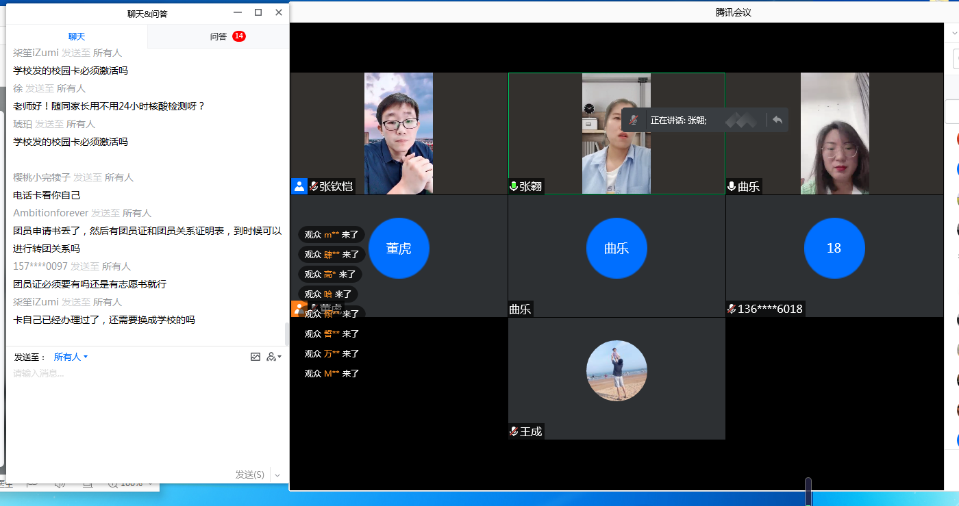 家校联动,圆梦青理。因势而新的“云端”新生家长见面会架起了家校的连心桥。会议持续两个小时,公司老师讲解细致全面,会场氛围热烈, 2021级新生家长们纷纷通过腾讯会议线上“点赞”,对公司老师的周到服务和细致安排表示感谢。家长们纷纷表示:公司细心的服务和暖心的安排让家长们感到安心,非常放心将孩子送到太阳成集团tyc234cc,家长一定积极配合公司、公司的相关工作,共同为孩子的成长成才保驾护航。(撰稿:曲乐,审稿:董虎)