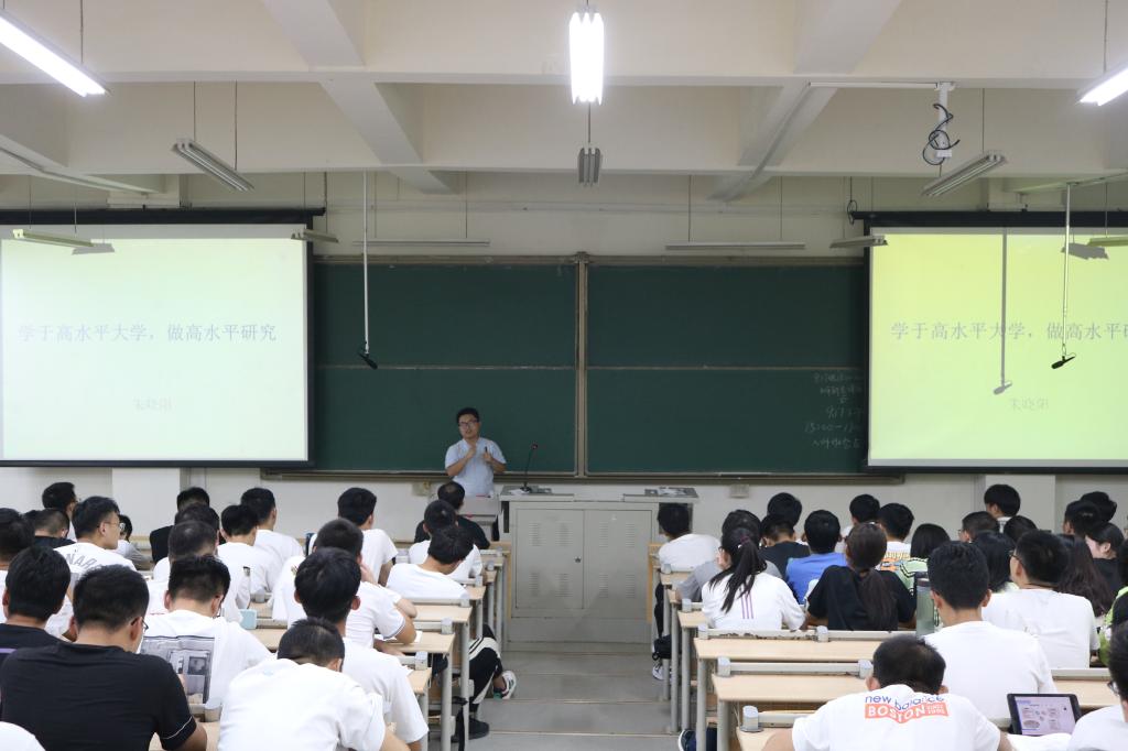 随后,朱晓阳老师做了题为《学于高水平大学,做高水平研究》的报告,朱老师为新生细致地讲解了研究生硕/博生涯学术规划,着重强调了科研规范和学术底线问题,并通过实例向同学们展示了科研舞弊的严重性。朱老师为同学们分享了科学研究技巧以及如何升华实验研究成果。在提问环节,朱老师就如何写一篇高质量的综述论文这一问题,对新生的问题进行了细致的回答,员工们获益匪浅。