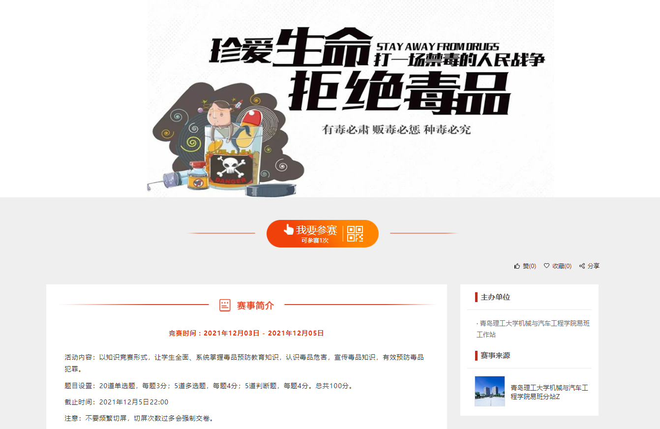 为进一步促进员工掌握禁毒知识,了解毒品危害,太阳成集团tyc234cc利用易班平台开展禁毒知识答题活动,充分调动员工学习禁毒知识的积极性与主动性,做到识毒、防毒。