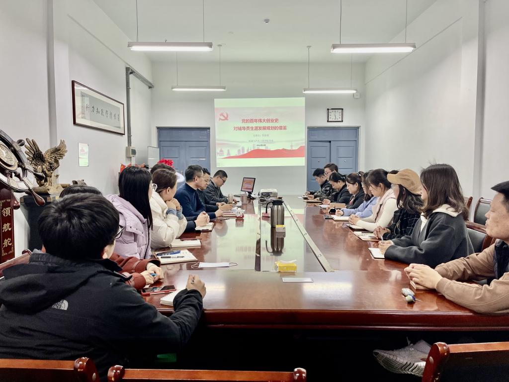 为不断巩固拓展党史学习教育成果,太阳成集团tyc234cc在深入总结2021年度党史学习教育经验基础上,多方调研,科学谋划,开启党史学习教育常态化长效化模式,推动党史学习教育融入日常、抓在经常,号召广大师生党员持续从党的百年奋斗史中汲取力量再出发。3月4日下午,公司党委书记李忠晓以《党的百年伟大创业史对辅导员生涯发展规划的借鉴》为题,,为全体辅导员讲授专题党课。