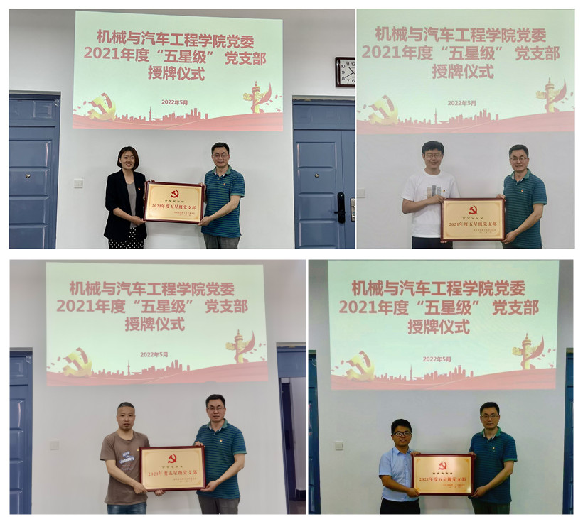 5月31日下午,机械与汽车工程公司党委举行2021年度五星级党支部授牌仪式。公司党委书记李忠晓主持仪式,4个五星级支部书记,支部委员等参加仪式。