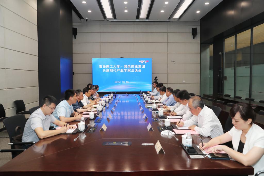 潍坊市产教融合研究院经理田元训、副经理冯秀红,潍柴集团党委副书记、副董事长徐新玉,潍柴集团党委委员、工会主席、潍柴职业大学董事长鲁文武,常务副董事长钟建民、副董事长张东海以及相关部门负责人出席会议。双方就共建现代产业公司进行了深入交流。