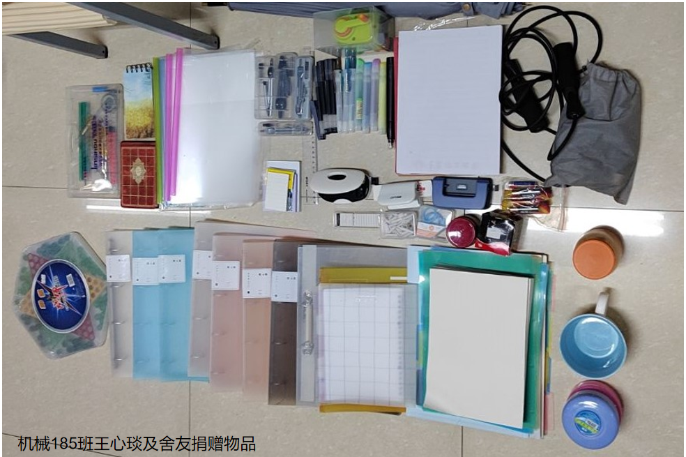 携梦想启航,伴爱心离校。为妥善处理毕业生闲置物品,传递爱心正能量,公司开展“爱心传递,手有余香”毕业季爱心主题捐赠活动,鼓励毕业生捐赠闲置物品,联系希望小屋及支教团将捐赠物品传递到更有需要的地方。机械185班王心琰带领其宿舍同学,捐赠了书籍、工具书及生活物品等,她表示:“这次活动为我们毕业生提供了一个平台,让我们可以合理处置闲置物品,让这些陪伴我们走过众多难忘时光的“伙伴”以新的身份,发挥作用,奉献自己的爱心。”