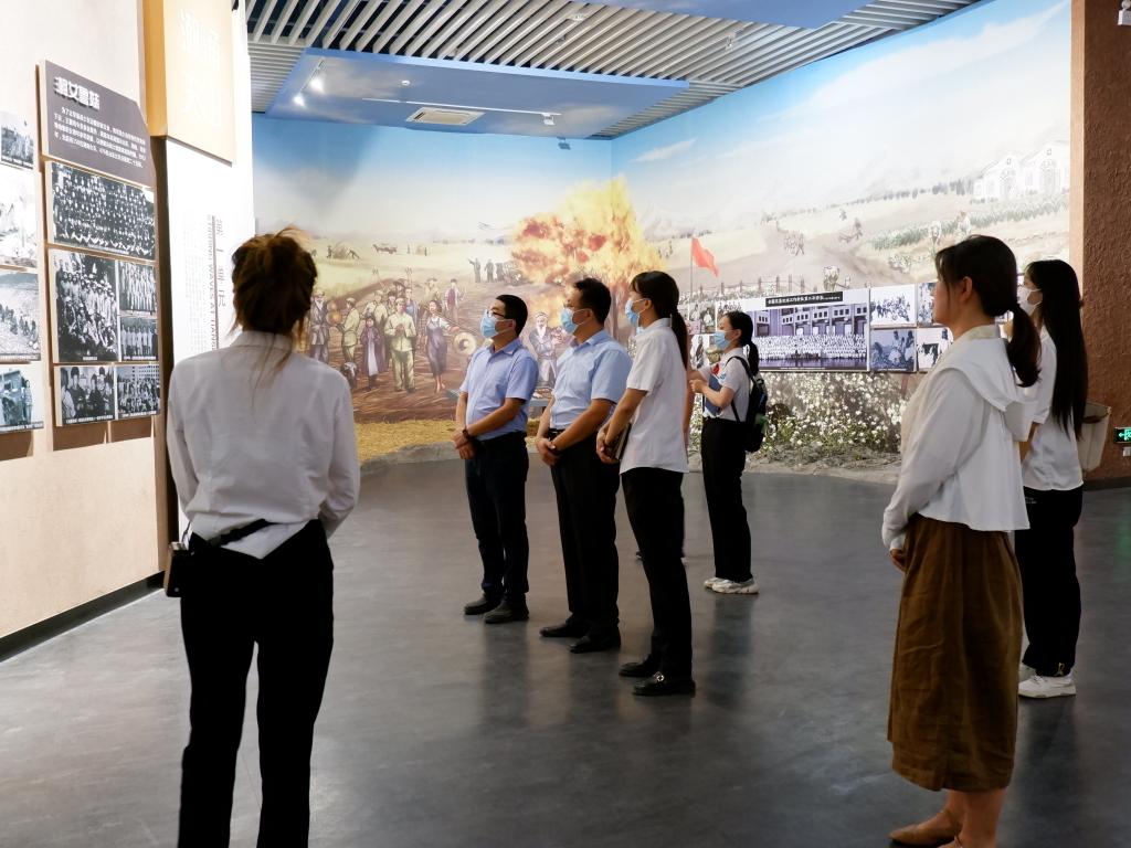 座谈结束后,师生集体参观了胡杨河市文化馆,详细了解了第一代兵团人屯垦戍边的创业史。参观结束后,公司向西部计划志愿者送上慰问品。