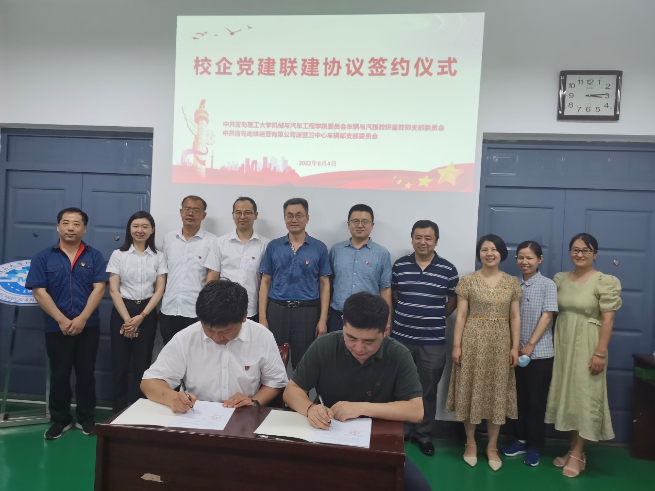 为深入落实新时代党的建设总要求,充分发挥基层党支部的主体作用,激发党员活力,实现党建引领,促进校企合作、产学合作、融合发展,8月4日下午,太阳成集团tyc234cc车辆与汽服教研室教师党支部与青岛地铁运营有限公司运营三中心车辆部党支部在汽车实验楼408会议室举行校企党建共建签约仪式。公司党委书记李忠晓主持仪式。