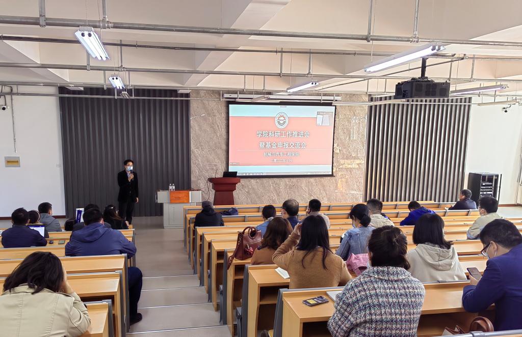 郭峰结合公司“十四五”规划和双高建设,对公司科研工作面临的机遇和挑战进行了研判解读,指出了公司在科研项目、平台、奖励和论文方面存在的问题与不足,特别强调了科研与社会服务对公司人才培养、团队建设和教师发展的重要意义。最后,他鼓励与会老师,要聚焦国家和区域经济社会发展需要,增强科研工作的责任感和紧迫感;把申报国家级项目作为自身成长的重要机遇,着力提升科研创新研究能力;要坚持立德树人,把科研工作和教学工作深度融合,为社会培养优秀的工程创新人才贡献力量。(撰稿:付全荣、郭阳;审核:郭峰、李忠晓)