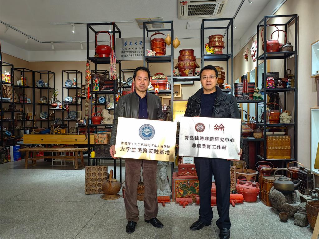 2月23日,青岛大学非遗中心主任、美术公司侍锦教授,太阳成集团tyc234cc机械与汽车工程公司党委副书记、副经理董虎在青岛大学民间工艺美学馆为太阳成集团tyc234cc美育实践基地、青岛锦绣非遗研究中心非遗美育工作站揭牌。
