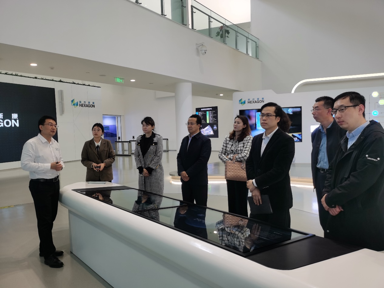 牟永川一行在海克斯康教育产业总经理廖鲁等人的陪同下,先后参观了“双智”展示空间和智慧园区运营中心,全面了解了公司的企业文化、主营产品和技术实力,随后,双方就产学研合作、员工就业创业等方面进行了座谈。