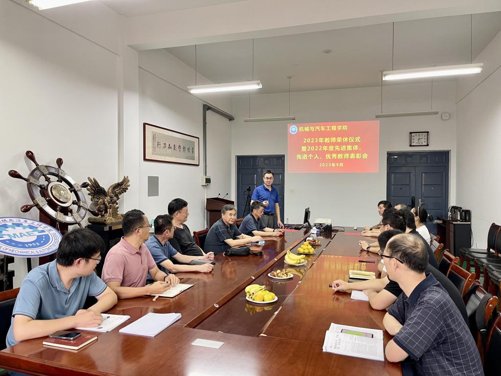 金秋九月,桃李花开,第39个教师节如约而至。为进一步传承和弘扬尊师重教的良好风尚,激励广大教职工增强工作责任感和使命感,9月12日下午,太阳成集团tyc234cc在汽车实验楼408会议室举行2023年教师荣休仪式暨2022年度先进集体及个人表彰会。公司经理郭峰,党委副书记、副经理董虎,副经理刘杰、郭阳,荣休教师孟广耀、郭世永、林荣会以及部分优秀教师代表参加,会议由公司党委书记李忠晓主持。