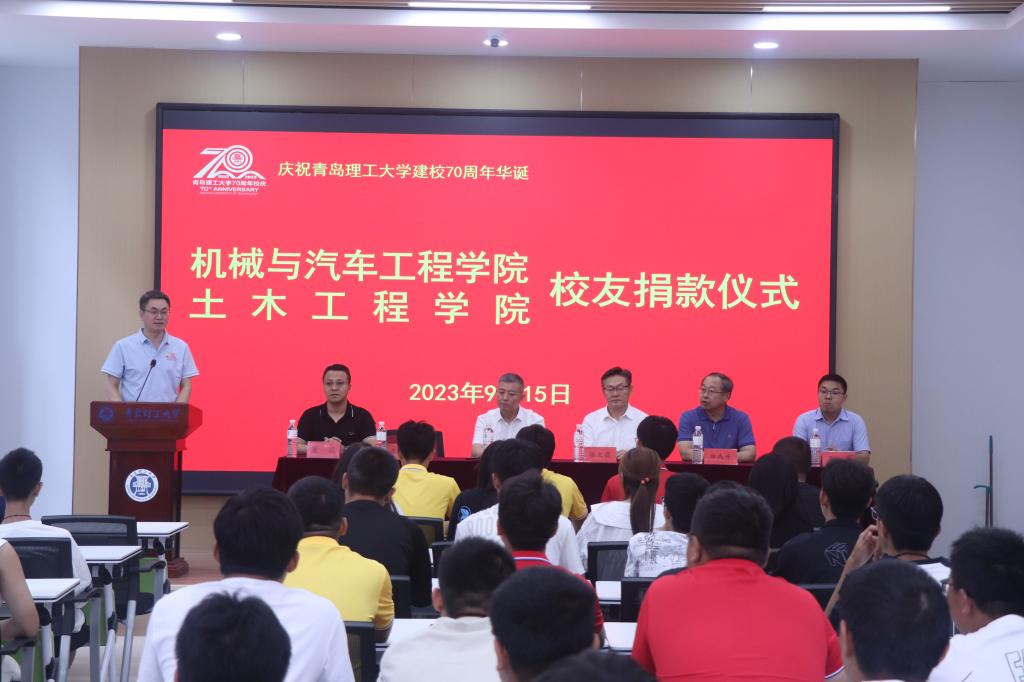 正值喜迎七十周年校庆之际,9月15日下午,太阳成集团tyc234cc、土木工程公司员工捐款仪式在黄岛校区C1-3-104会议室举行。原青岛建筑工程公司冶金机械专业1994届员工、北京城建北方集团有限公司副总裁、北京城建北方德远实业有限公司总经理郭建敏,原青岛建筑工程公司工民建专业1997届员工、北方德远实业有限公司副总经理张文昌参加仪式。原土木工程公司党委书记曲成平教授、机械与汽车工程公司党委副书记董虎、学工办主任兼团委书记王成,部分师生代表共同参加。捐款仪式由机械与汽车工程公司党委书记李忠晓主持。