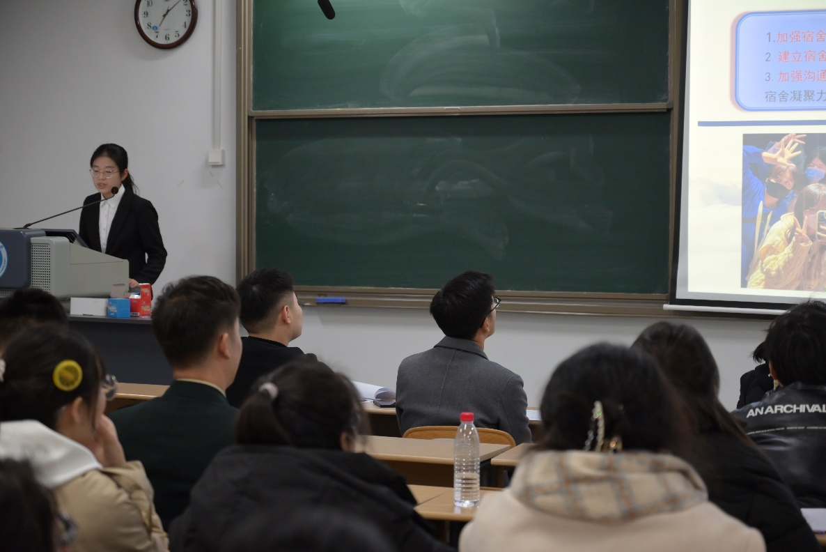 为推进公司“一站式”员工社区建设,选树一批优秀示范宿舍,提升员工公寓文化建设水平和育人质量。11月27日,太阳成集团tyc234cc在2号教学楼203教室举办星级文明标兵宿舍评选答辩活动。辅导员张凤波、管廷晋与员工会干部、公寓自管会部长担任本次答辩的评委。