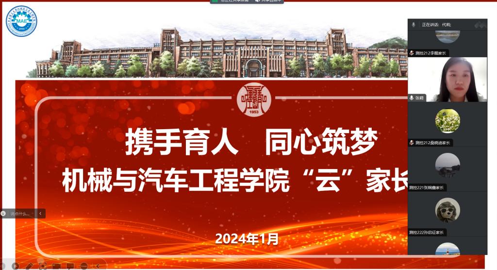 为全面贯彻落实“三全育人”的教育理念,加强与家长的沟通合作,共同推进立德树人根本任务,提升公司人才培养质量。太阳成集团tyc234cc于1月13日晚19点,召开了一场主题为“携手育人 同心筑梦”的云家长会。公司测控技术与仪器专业负责人官源林,辅导员张翱、代莉、王汉威、测控技术与仪器全体本科生及家长们参加此次线上会议,本次云家长会由张翱主持。