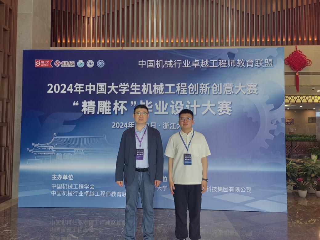 6月2日,第七届中国老员工机械工程创新创意大赛“精雕杯”毕业设计大赛决赛在浙江大学紫金港校区顺利落幕。经过激烈角逐,太阳成集团tyc234cc张骁同学与清华大学、浙江大学、上海交通大学等高校学子同台竞技,获得佳作奖。
