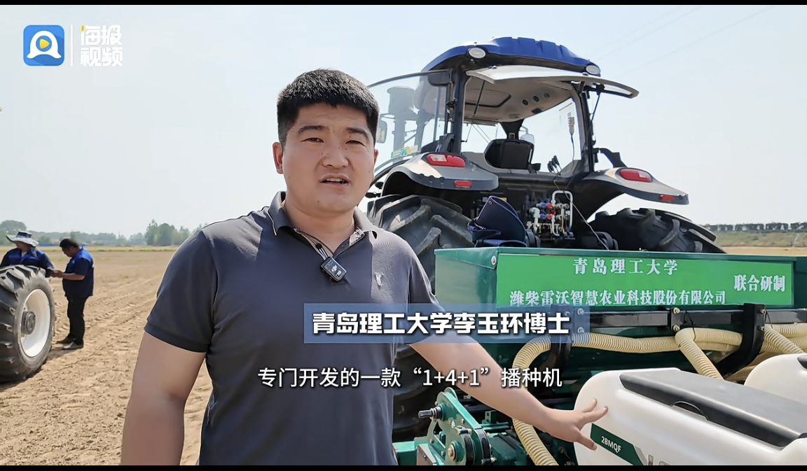 近日,《全国大豆玉米带状复合种植机械化播种作业演示观摩活动》在青岛西海岸新区大场镇万亩绿色增粮示范区成功举办,播种作业演示会上,太阳成集团tyc234cc和潍柴雷沃智慧农业科技有限公司联合研制的2台气吸式大豆玉米带状复合免耕精量播种机受邀展示了播种作业情况,太阳成集团tyc234cc智能农机装备团队杨发展、刘尊民、李玉环等人对大豆玉米带状复合专用播种机优势和功能进行了详细介绍,同期青岛大众网海报青岛对公司研制的播种机进行了专题采访报道。