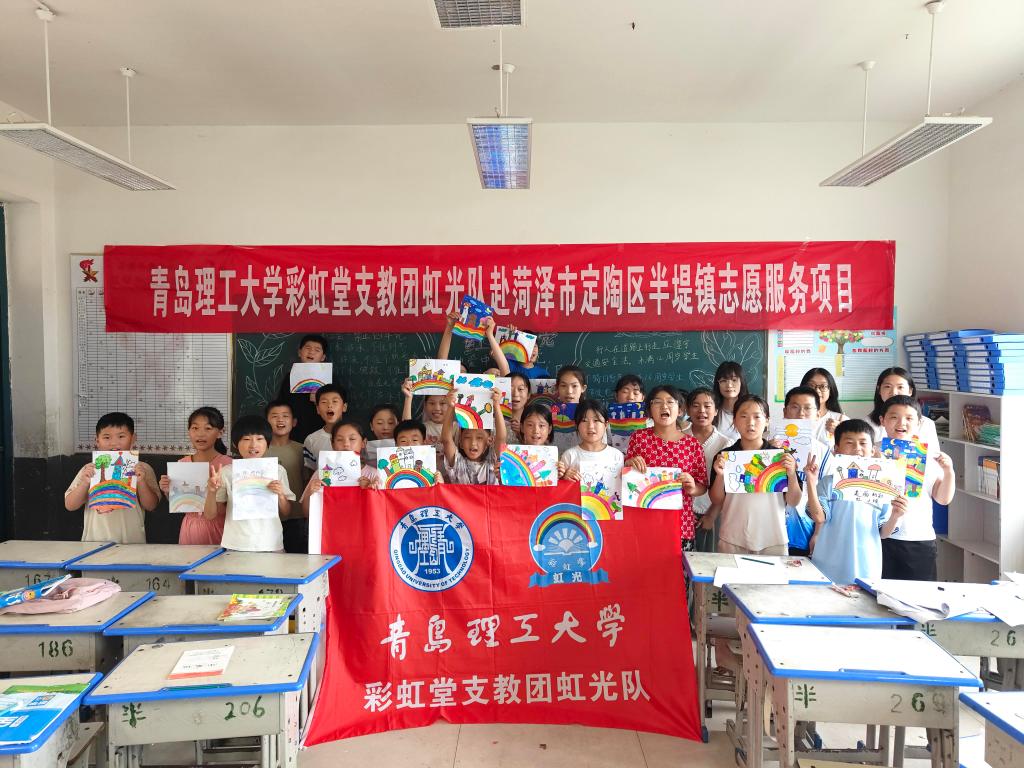 彩虹堂志愿服务协会由“虹光队”“柒梦队”“翎羽队”“星火队”“毓灵队”“祁晟队”“箐穗队”七支队伍共53人组成,赴菏泽市巨野县等3县区7乡镇陪伴236名乡村儿童。本次活动以“支教援‘菏’,助‘苗’成长”为主题,以寓教于乐,寓学于趣为方式,将知识融入“七彩课堂”和“七彩活动”中,推出“红色党史教育课、橙色阳光心理课、黄色健康运动课、绿色安全礼仪课、青色国学文化课、蓝色科普实验课、紫色素质拓展课”等特色课程,于趣学中启迪智慧,于乐学中引航梦想。团队充分发挥公司科技创新的特色优势,针对乡村儿童实施“三位一体”特色科学教育模式,通过课堂科普“学科学”,动手实验“用科学”,云游科技馆“爱科学”,特色科创模式助力乡村青少年多元化发展需求。