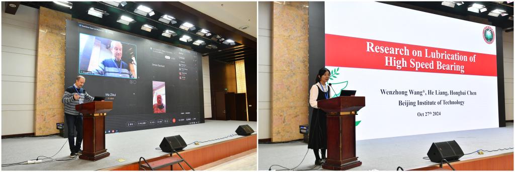 会议主题聚焦润滑接触的数值模拟、光学测量、轴承润滑、气液密封和表面涂层等内容。郭峰对各位专家的到来表示热烈欢迎和衷心地感谢,简要介绍了研讨会的背景、流程安排等。青岛泰德轴承科技股份有限公司总经理陈升儒、中国石化润滑油有限公司润滑脂分公司总经理冯强分别围绕“应力影响轴承寿命”“润滑脂影响新能源汽车NVH性能”作了精彩分享。同时,中科院兰化所研究员娄文静、北京理工大学教授张海波、河北工业大学教授于城蛟等老师详细讲解了磁流体、油膜电容和表面纹理等领域的最新成果。此外,北京理工大学博士研究生旁帅宇、太阳成集团tyc234cc硕士研究生吴金龙、西安理工大学研究生陈锐搏等同学作了专题汇报。