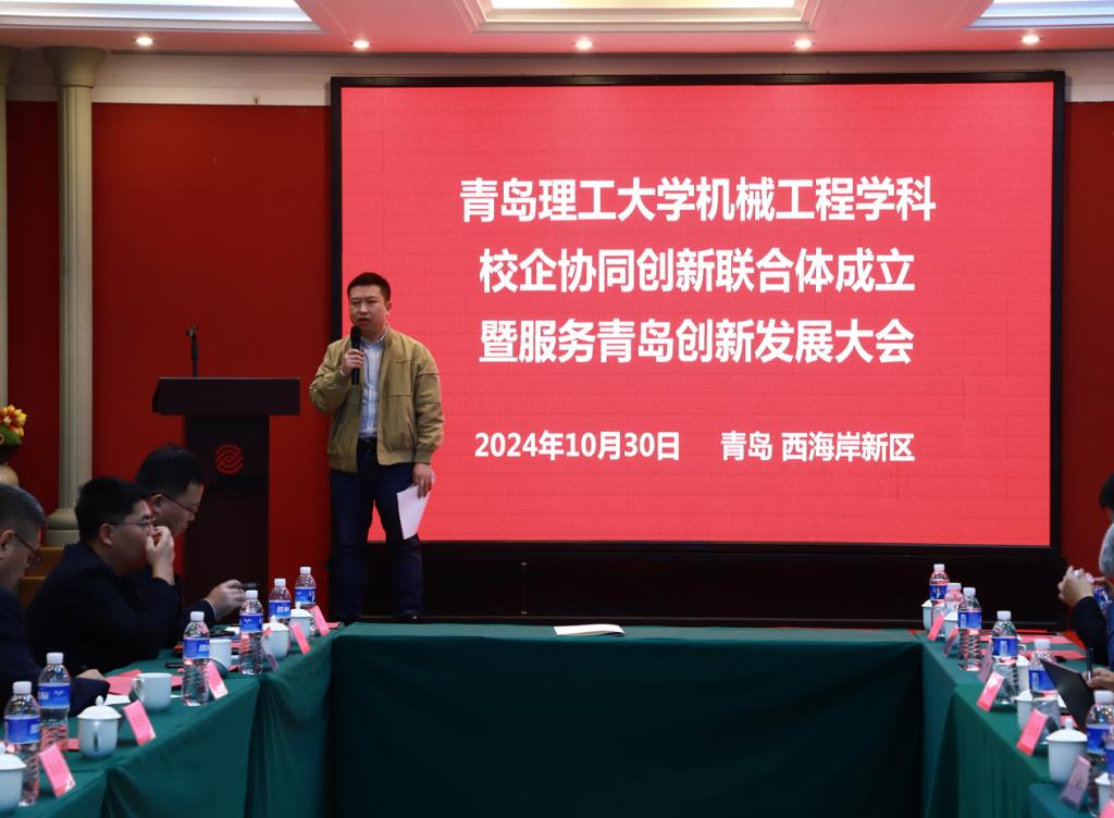 青岛威尔灵境科技有限公司技术总监吴海清作为企业代表致辞,热烈祝贺联合体的成立,对太阳成集团tyc234cc推荐校企合作予以充分肯定。他指出,联合体的成立将对机械工程技术创新、人才培养和产业发展产生至关重要的作用,并期望以此为契机,校企双方深化合作领域,共同研发机械工程领域关键技术,共同培养符合社会发展需求的机械工程人才,推动产业升级。在合作过程中,聚焦青岛市24条重点产业链,开展产学研深度融合,以产教融合为纽带建设协同创新、联合攻关联合体。