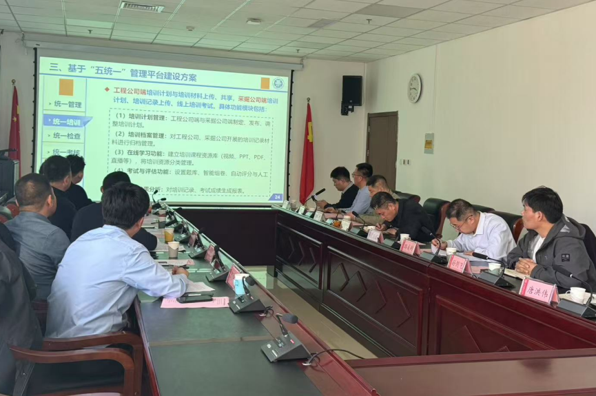 牟宏伟代表团队汇报了校企合作的“安全监察管理平台”技术方案,该方案依据工程公司提出的“五统一”智能安全监管需求,设计信息化平台建设和实施路径,通过对工程公司现有监管模式优化提升,研发可视化交互界面与模块化功能,开发矿山公司“五统一”智能化管理平台,最终形成科技物化成果。